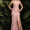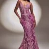 LaDivine by Cinderella Divine 7478C Bishop Sleeves Faux Wrap Plus Size Prom Gown