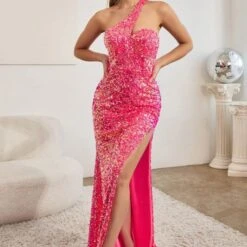 LaDivine by Cinderella Divine C140 Asymmetric Neckline Sequin Prom Gown
