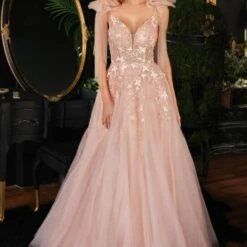 LaDivine by Cinderella Divine CB097 Butterfly Glitter Bow Strap Prom Dress
