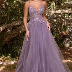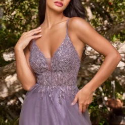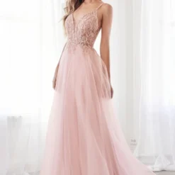 LaDivine by Cinderella Divine CD0154 Strappy Back Lace Bodice Long Party Dress
