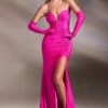 LaDivine by Cinderella Divine CD226C Velvet Bodice Long Sleeve Plus Size Prom Gown