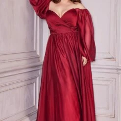 LaDivine by Cinderella Divine CD243C Bishop Sleeves Ruched Top Plus Size Formal Dress
