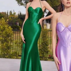 LaDivine by Cinderella Divine CH112 Corset Bodice Halter Strap Long Party Dress