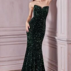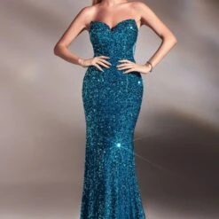 LaDivine CH151 Strapless Sweetheart Sequin Dress