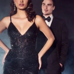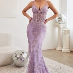 LaDivine J810 Sheer Corset Spaghetti Straps Dress