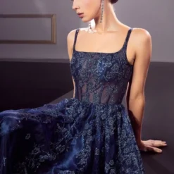 LaDivine J840 Sheer Corset Floral Glitter Dress
