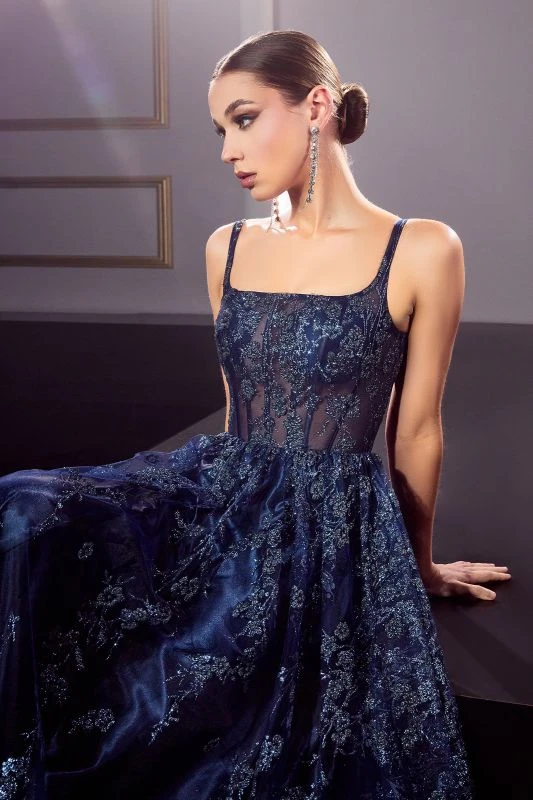 LaDivine by Cinderella Divine J840 Sheer Corset Floral Glitter Prom Gown