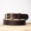 Our heritage belts are made with 6-7oz thick leather from Horween and a veg tan liner stitched together. Available in five different colors, and three solid brass hardware color options. Solid matching Chicago screws for easy buckle change. All handmade here in Spokane Washington. A perfect matching accessory to go with your Nicks Handmade Boots.