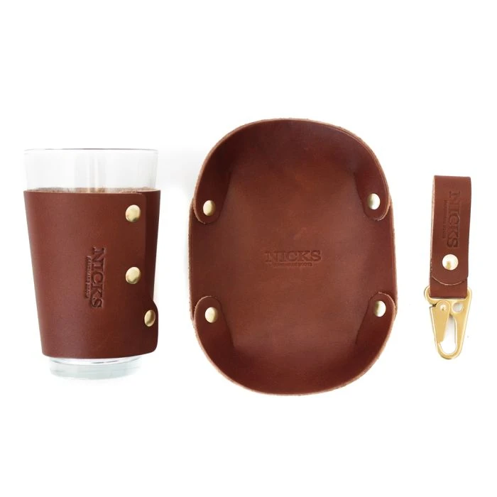 This bundle consists of a Nicks Key Clip, Catch-All, and Drink Sleeve.